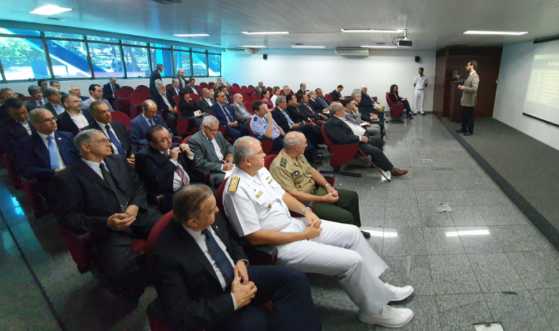 Esta reunião mensal da Associação contou com a presença do Vice-Almirante Sergio Fernando de Amaral Chaves Junior, Comandante do 8º Distrito Naval, que fez a abertura do evento; do presidente da ABIMDE, Roberto Gallo; de representantes da entidade e de diversos empresários das indústrias de Defesa do Brasil.
